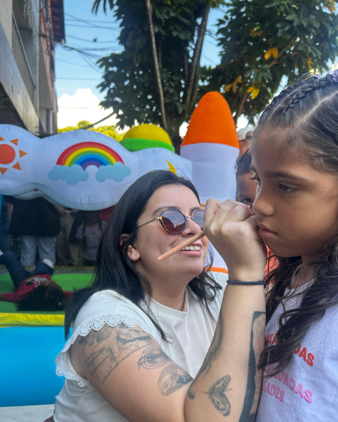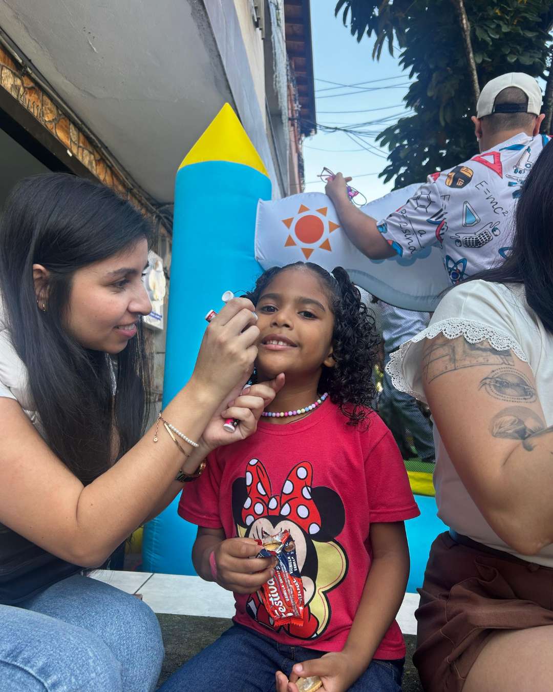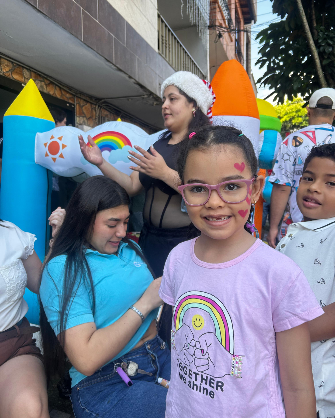 We brought 16 boxes of essential items and gifts, set up an inflatable play area so the children could spend the morning playing and laughing, and shared the entire day with them through games and activities.